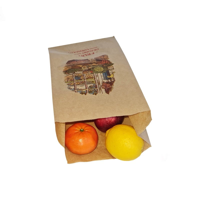 zijvouwzakken, 16x10x35 cm, smal gestreept bruin kraft, 40 grs, dessin vers fruit
